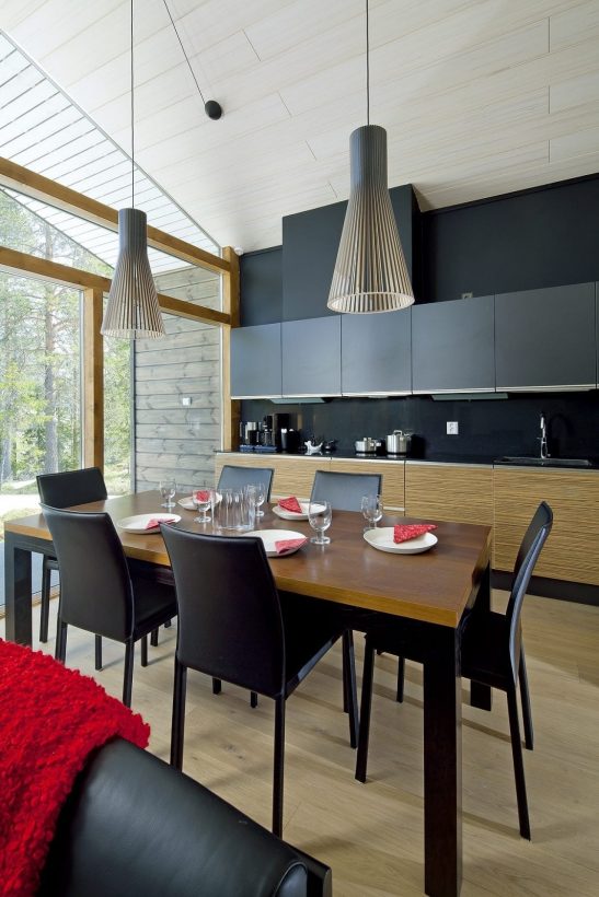 As people want to spend more time together and outdoors, their homes should also be built with comfortable outdoor spaces. Living areas, dining areas and even kitchens can be constructed outside. Terraces can include fixed dining tables, benches, plants, storage spaces and so on. The use of outdoor lighting adds mood and functionality. Indoors, large windows are popular because they help to bring the outside into the house. All this can be realised with modern log houses.